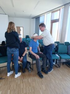 Im praktischen Teil wurden zunächst die stabile Seitenlage sowie der Neurocheck mit Hilfe der VDST App geübt. Anschließend konnten die Teilnehmer verschiedene Verbandstechniken ausprobieren, die auch im Alltag von großem Nutzen sein können.