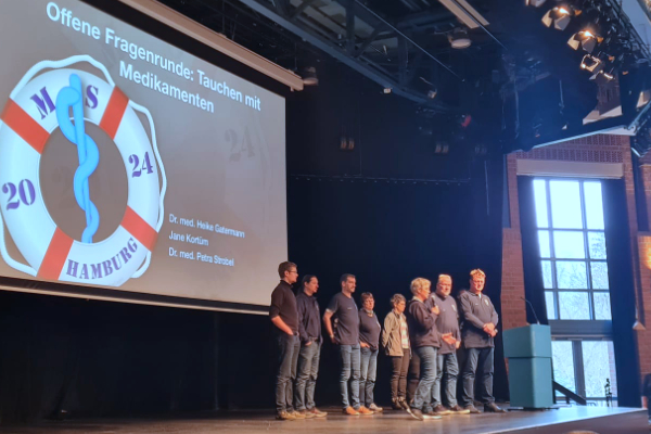 An zwei Tagen tauschten wir uns inspiriert zu Vorträgen zu den Themen Diabetes, Tauchen im Alter, psychologische Hilfe nach Tauchunfällen, Medikamente und Tauchen, Erkrankungen des Alters, Schwindel und Fragen zum Versicherungsschutz in Bezug auf Gerätekonfiguration aus. Ein neuer Programmpunkt war „Taucher fragen Taucher“. Bereits im Vorwege hatten die Teilnehmer Gelegenheit, Ihre Fragen einzureichen, und so konnten viele Fragen detailliert erörtert werden. Und aufgrund der guten Erfahrung wird dies in der Zukunft fester Bestandteil unseres MS Hamburg werden.